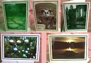 These distinctive hand-crafted notecards feature an actual photograph by Dianna affixed to a high quality 5X7 card. The cards include matching envelopes, and are blank inside so that you can write in your own personal message. To see our entire catalog (and for ordering information), click on the samples shown. |